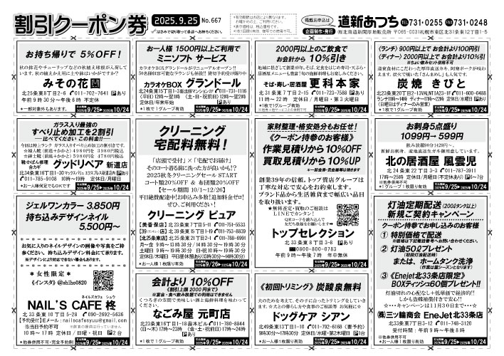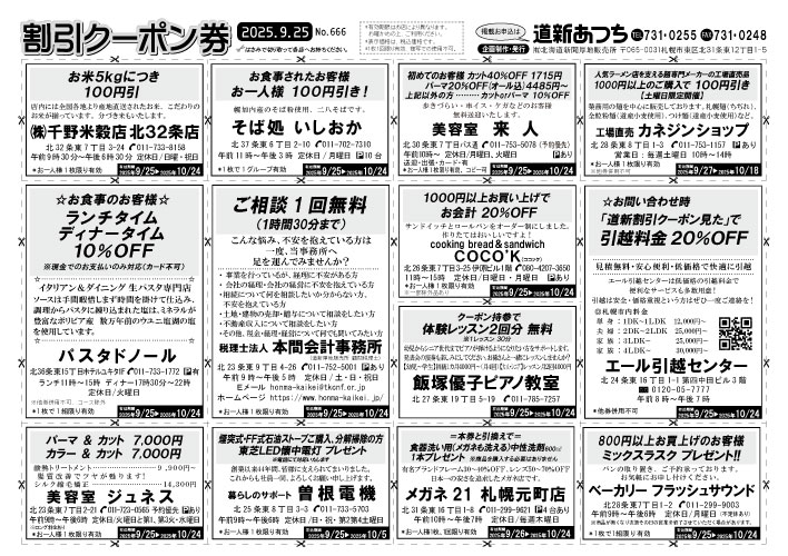 地域の読者向けサービスとして、毎月25日に割引クーポン券を発行しています。