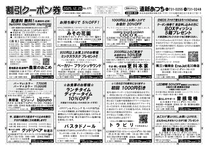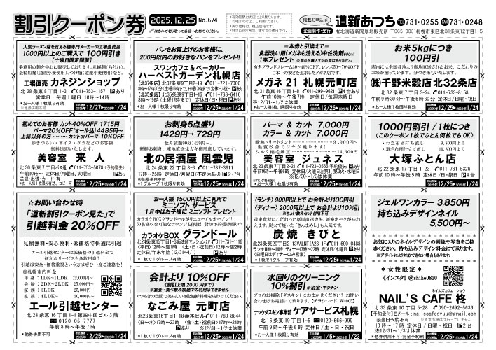 地域の読者向けサービスとして、毎月25日に割引クーポン券を発行しています。