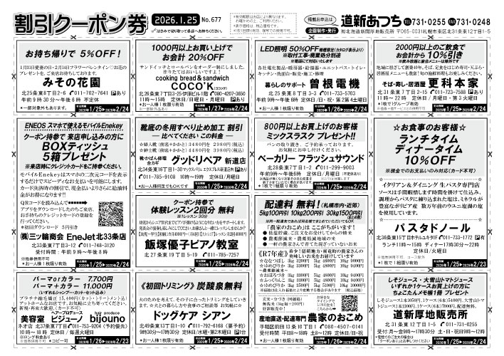 地域の読者向けサービスとして、毎月25日に割引クーポン券を発行しています。