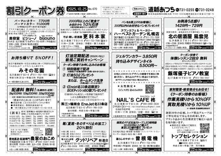 地域の読者向けサービスとして、毎月25日に割引クーポン券を発行しています。